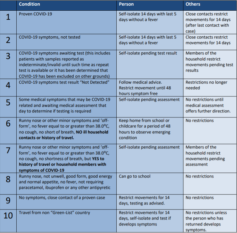 For a quick guide to isolation procedures for COVID-19 please click here or visit our Documents page. On this link you will find a quick guide table that will provide you with isolation instructions for all scenarios.
